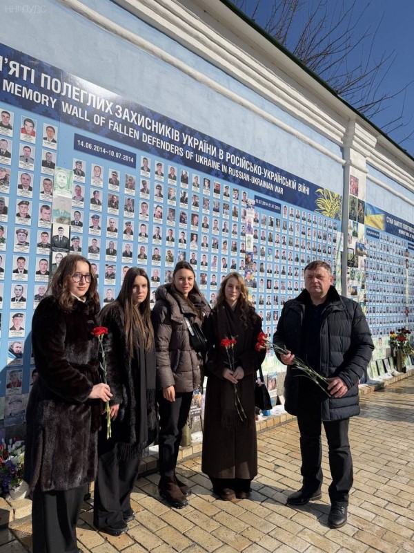 Сьогодні, 20 лютого, дирекція та студенти Навчально-наукового інституту публічного управління та державної служби Київського національного університету імені Тараса Шевченка долучилися до університетської ходи та покладання квітів до Стіни пам’яті Героїв Небесної Сотні. Учасники вшанували подвиг Героїв, які віддали своє життя за свободу, гідність і європейське майбутнє України.