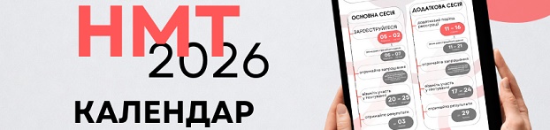 Наказом Міністерства освіти і науки України затверджено Календарний план організації та проведення у 2026 році національного мультипредметного тесту (НМТ). Радимо потенційним учасникам та учасницям заздалегідь зафіксувати важливі етапи проведення НМТ в особистому календарі. Завантажити графік НМТ у форматі PDF || Детальніше на сайті УЦОЯО